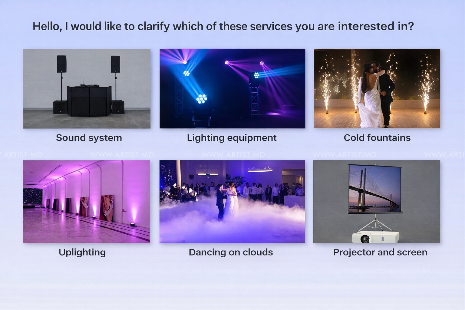Мы вместе уточняем, детали, локацию, время, формат мероприятия, ваши особенные пожелания.